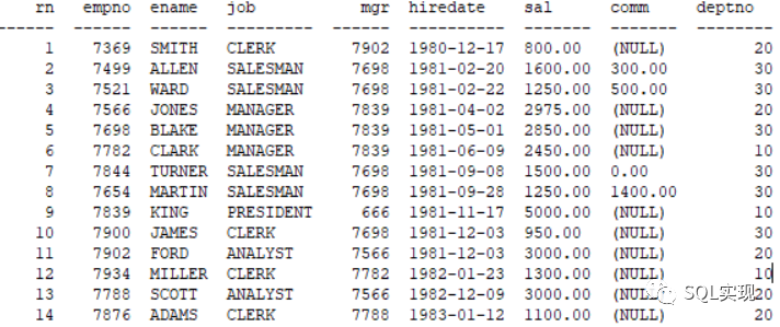 SELECTrow_number () over (PARTITION BY deptnoORDER BY hiredate) AS rn,emp.*FROMempORDER BY deptno