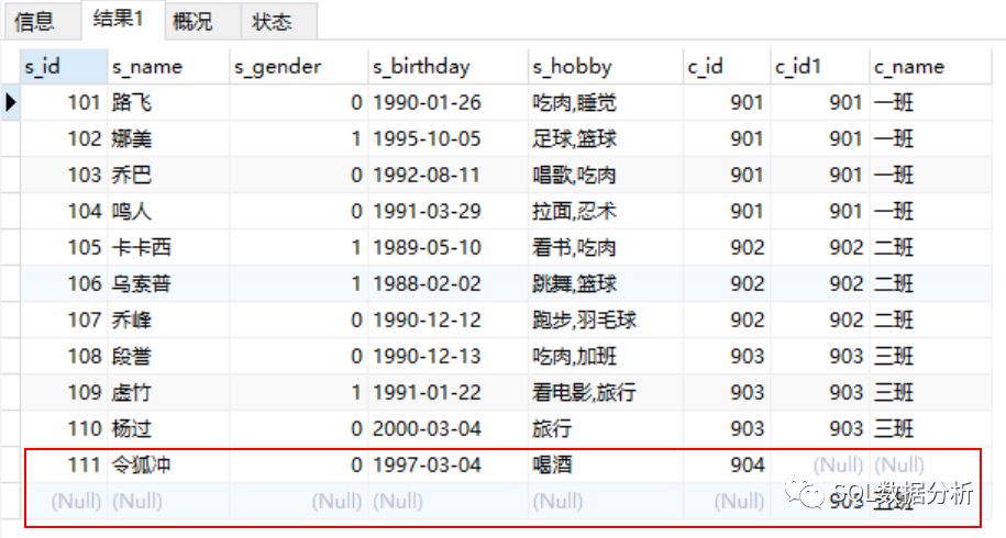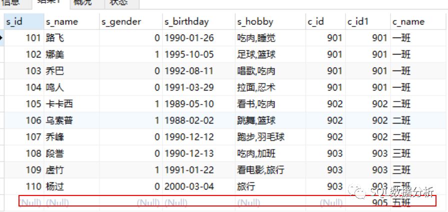 全关联,mysql没有full join 语法,我们可以通过使用union来实现