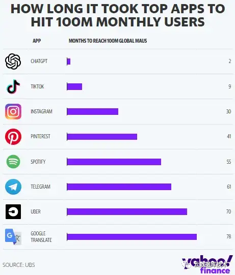 2022年11月底,OpenAI推出ChatGPT应用。根据Sensor Tower数据,仅仅2个月时间,ChatGPT就达到月活过亿,成为历史上增长最快的消费者应用程序。
