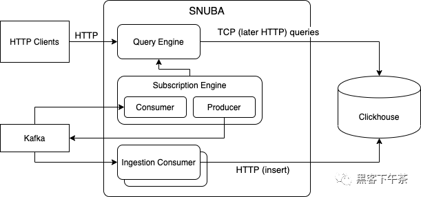Snuba 是一个在 Clickhouse 基础上提供丰富数据模型、快速摄取消费者和查询优化器的服务。以搜索和提供关于 Sentry 事件数据的聚合引擎。