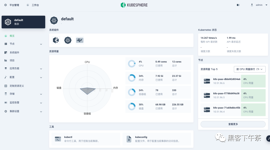 Kubesphere v3.3.1 集群可视化管理,全栈的 Kubernetes 容器云 PaaS 解决方案。