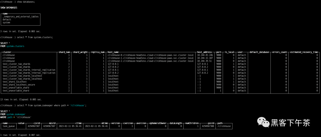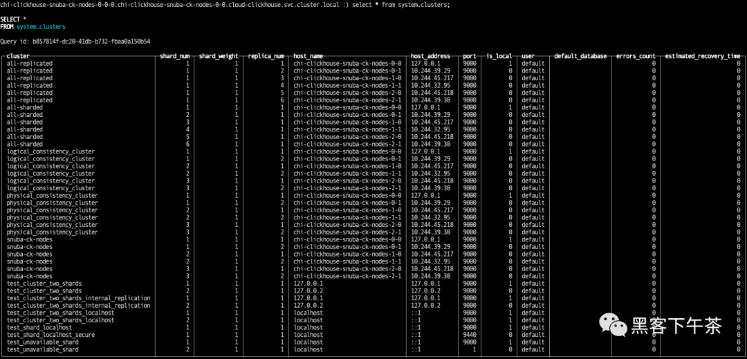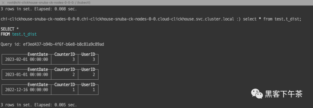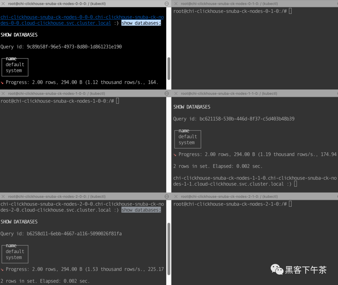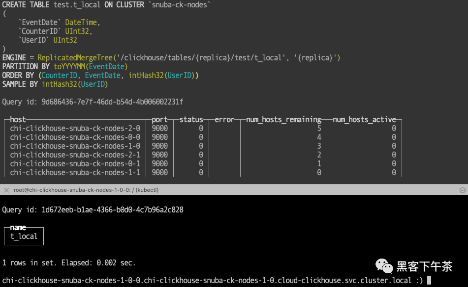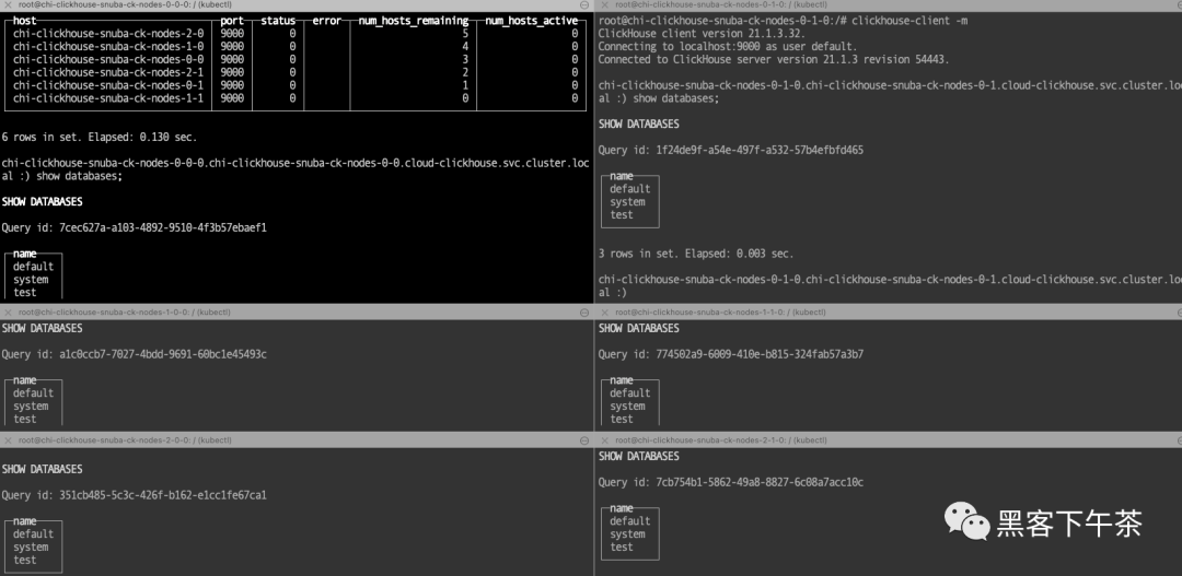 我们进入 Pod, 使用原生命令行客户端 clickhouse-client