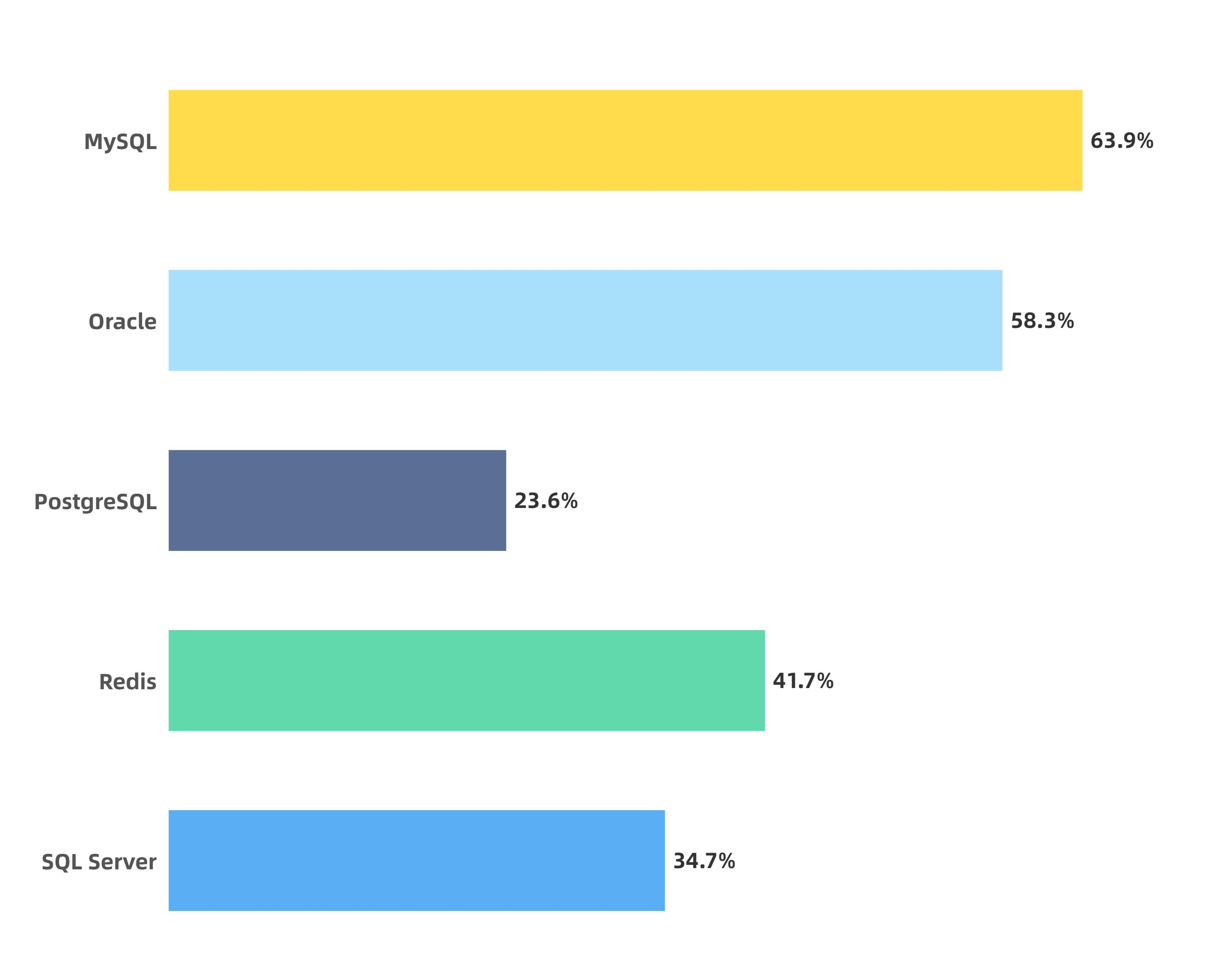 虽然超九成的企业计划使用中国数据库,但是仍有6.1%的企业未来不想使用中国数据库。在这类企业中,MySQL占有率最高达到了63.9%,其次是Oracle占比58.3%。国外开源的数据库产品仍旧是国产化替代的最大劲敌。
