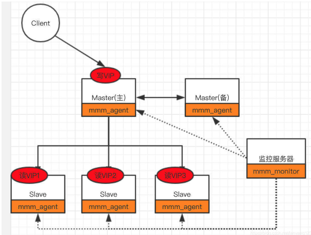 MMM(Master-Master replication manager for MySQL)是一套支持双主故障切换和双主日常管理的脚本程序。MMM使用Perl语言开发,主要用来监控和管理MySQL Master-Master(双主)复制,虽然叫做双主复制,但是业务上同一时刻只允许对一个主进行写入,另一台备选主上提供部分读服务,以加速在主主切换时刻备选主的预热,可以说MMM这套脚本程序一方面实现了故障切换的功能,另一方面其内部附加的工具脚本也可以实现多个slave的read负载均衡。
