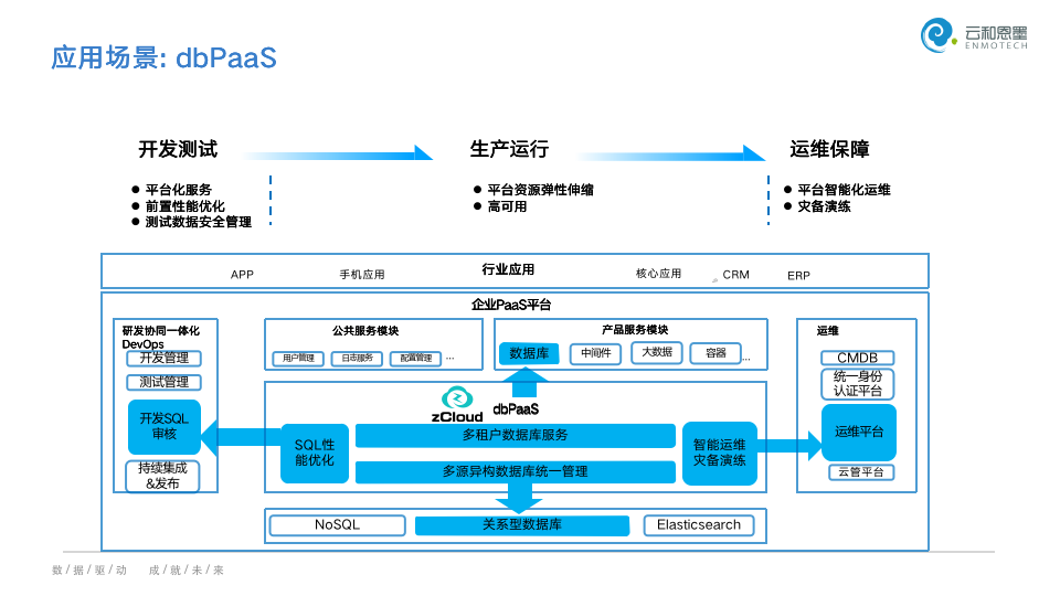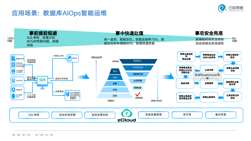 云和恩墨在数据承载(分布式存储、数据持续保护)、管理(数据库软件、数据库云管平台、数据技术服务)、加工(应用开发质量管控、数据模型管控、数字化转型咨询)和应用(数据服务化管理平台、数据智能、隐私计算数据联邦平台)等领域为各个组织提供可信赖的产品、服务和解决方案,围绕用户需求,持续为客户创造价值,激发数据潜能,为成就未来敏捷高效的数字世界而不懈努力。