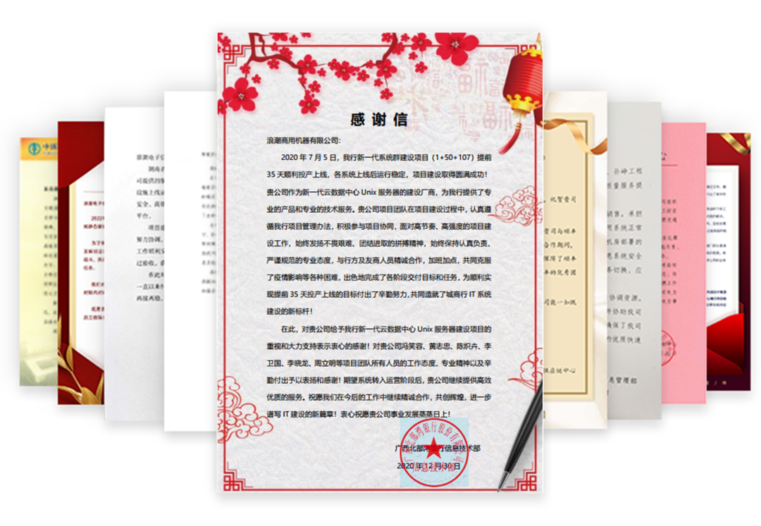 *部分感谢信展示