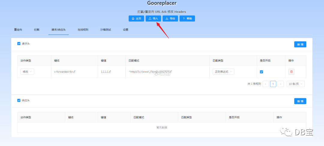 2、点击浏览器中该扩展的图标,点击导入下面的规则。如下图所示。