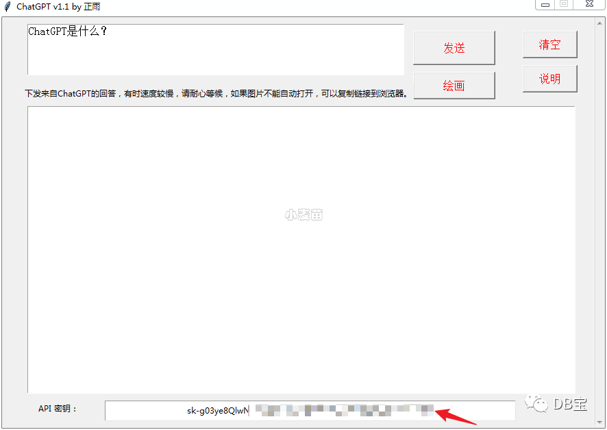 2、下载一个第三方的客户端(来自吾爱破解论坛),将申请到的API密钥输入到下图中。然后就也可以和ChatGPT对话了,平时对话的时候,不需要科学上网,正常联网即可。
