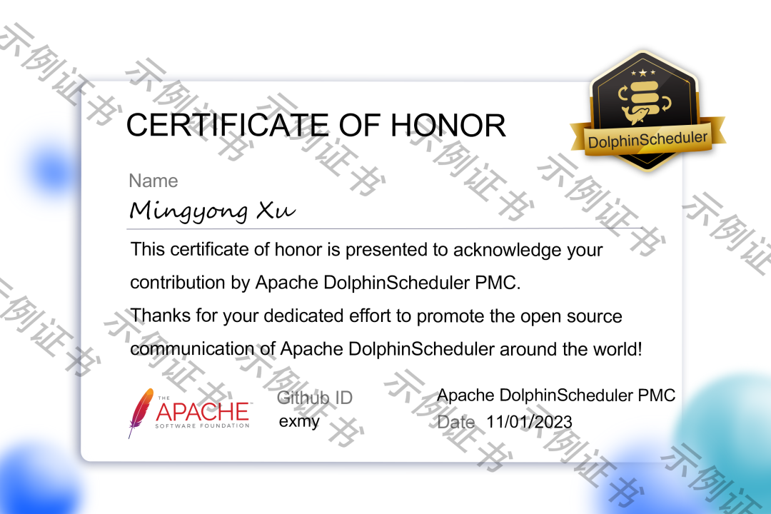 同时 Apache DolphinScheduler 社区还会为您精心准备的限定礼品数份,Apache DolphinScheduler 社区独家定制一份个人宣传海报以及现场演讲的内容会由社区运营同学整理成文,发表在 Apache Dolphin Scheduler 官方公众号等多平台进行宣传推广。