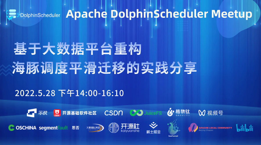 ○ Apache Dolphinscheduler 5月Meetup:6个月重构大数据平台,帮你避开调度升级改造/集群迁移踩过的坑