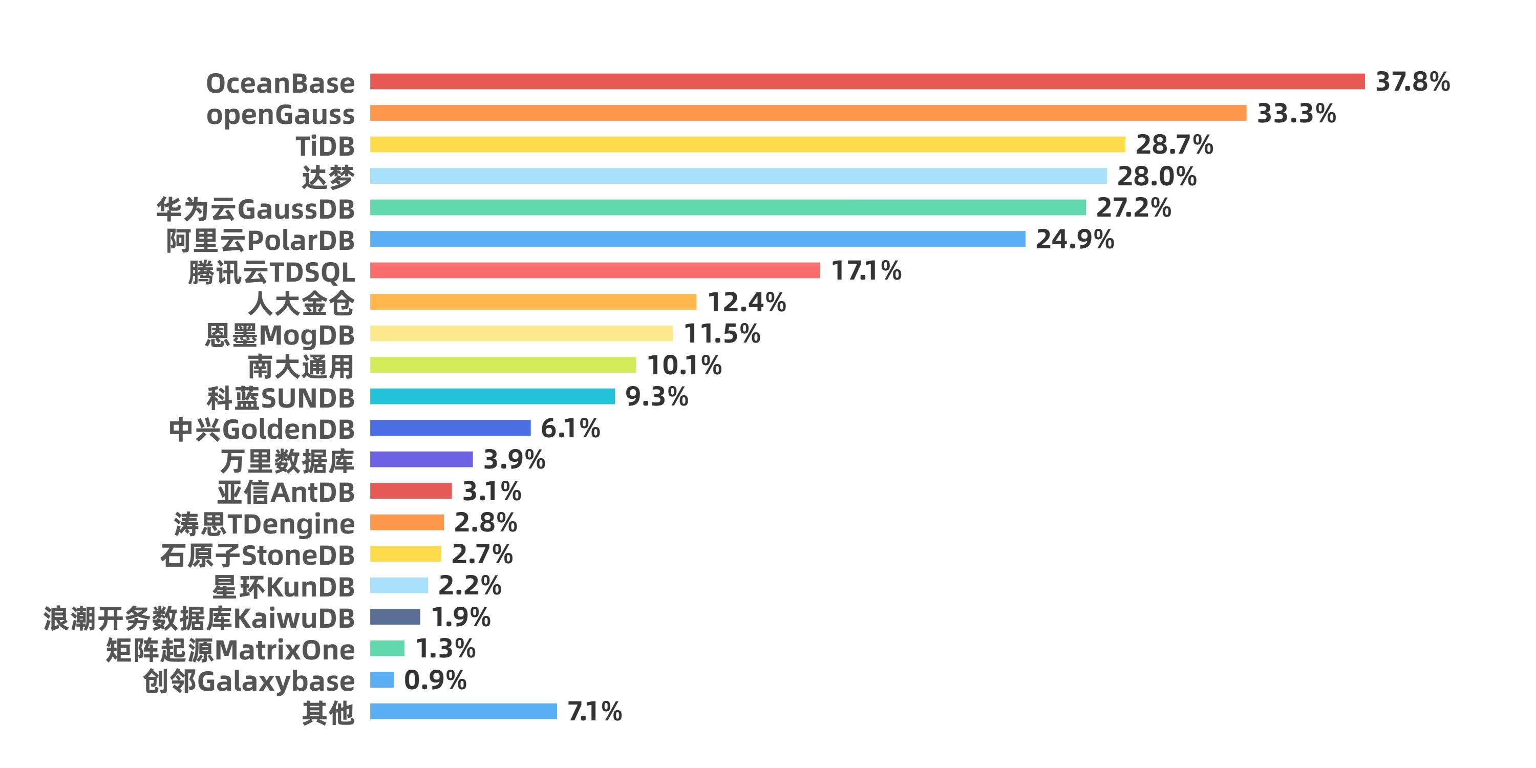 - 从业者未来计划学习的国产数据库TOP3分别是:OceanBase、openGauss、TiDB