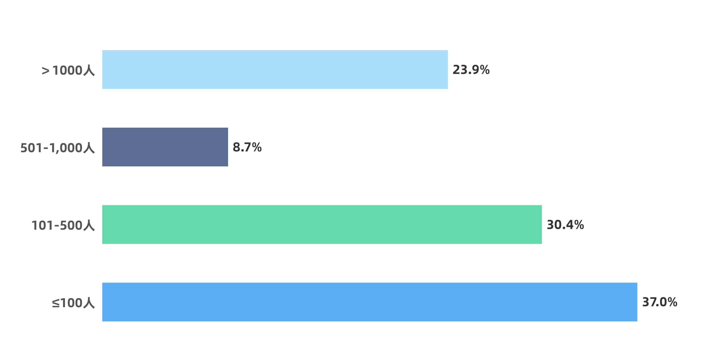 本次调研中,仅3.9%的企业当前未使用国外数据库,通过分析其企业规模情况可以发现,未使用国外数据库的企业以500人以下的中小型企业居多,在≤100人的企业与101-500人的企业分别占比为37.0%、30.4%。