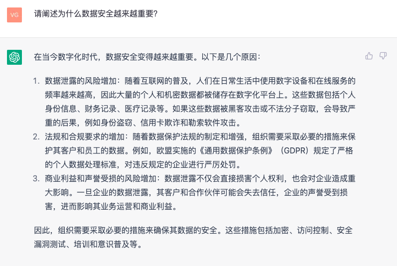 小编经过多次ChatGPT“满负荷”提示,终于凑到了热闹,就“数据安全”这个话题和它聊了聊。
