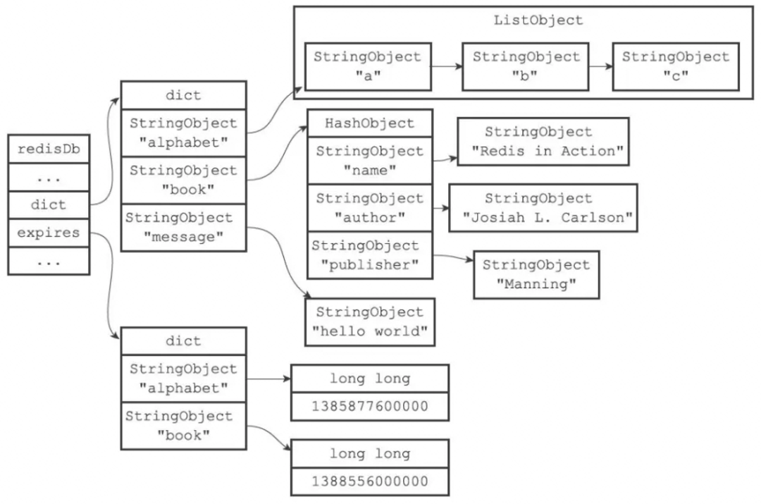 typedef struct redisDb {dict *dict; /* 维护所有key-value键值对 */dict *expires; /* 过期字典,维护设置失效时间的键 */....} redisDb;