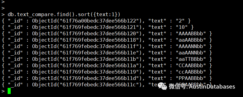 我们可以看到,在使用了collation的collection中我们的字符进行了指定方式的排序方面的大小比对。