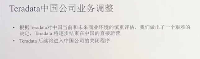 Teradata本身发展态势很好,但在中国市场水土不服,或者处于政策、监管层环境的压力,被迫退出中国市场。