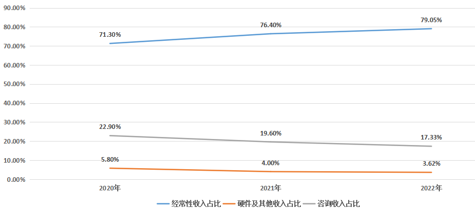 目前,越来越多的本地客户迁移到云中的Teradata Vantage,云业务已经成为Teradata的核心增长引擎。2021财年,Teradata的公有云业务收入为2.02亿美元,较上年增长91%;2022年,公有云业务收入3.57亿美元,同比增长76.7%,远远高于Teradata的整体业务增速。并且,云服务不仅收入增长快,毛利率也更高。2020-2021财年Teradata经常性业务收入毛利率为71.7%、75.1%,高于同期的综合毛利率55.5%、61.9%。