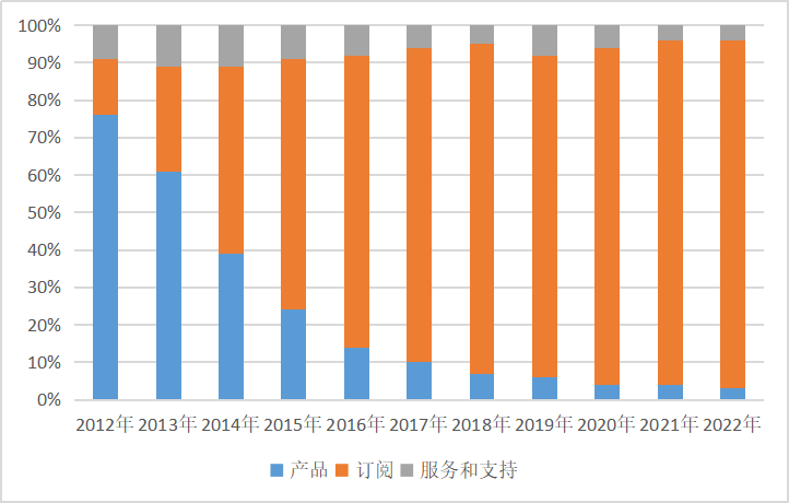 Adobe收入构成(2012-2022年) 来源:Adobe各年财报,数据猿整理