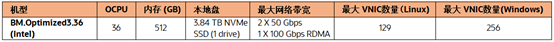 •裸金属实例BM.Optimized3:英特尔处理器,基准频率为3.0 GHz,最大Turbo频率为3.6 GHz