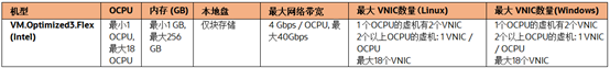 •虚机实例BM.Optimized3:英特尔处理器,基准频率为3.0 GHz,最大Turbo频率为3.6 GHz