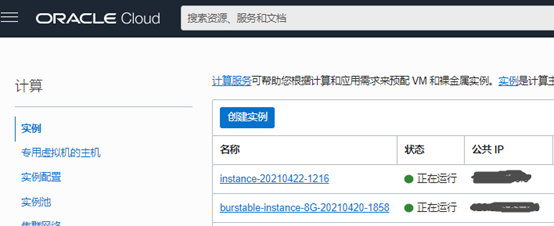首先进入OCI Console创建计算实例的页面,点击“创建实例”按钮。