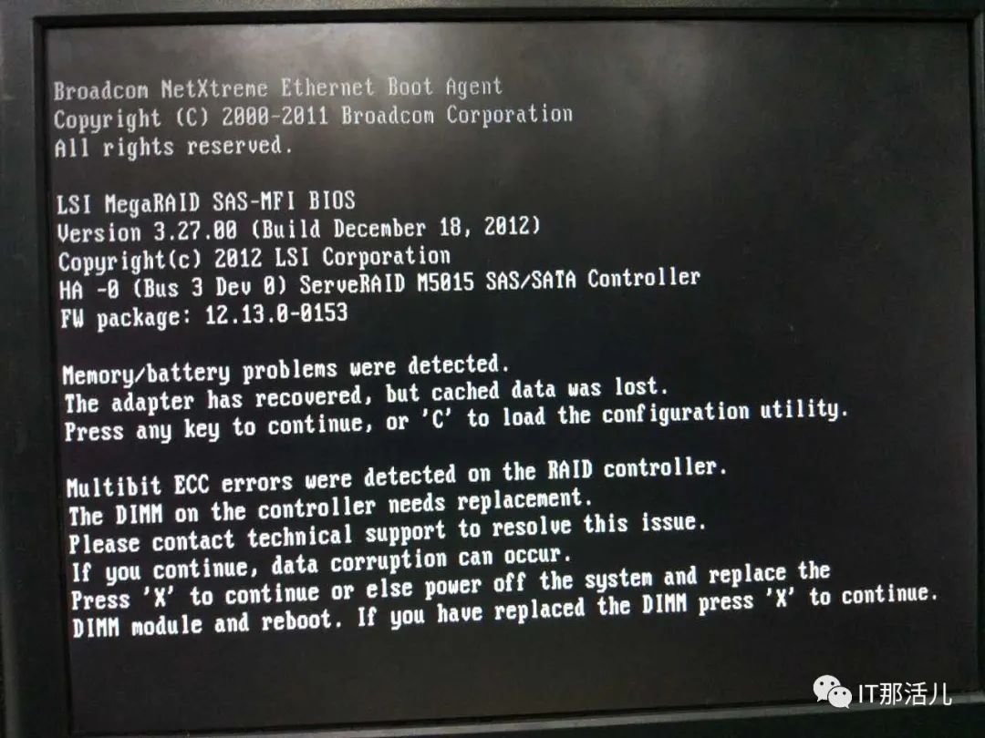 如上图所示:此主机夯机重启后,屏幕提示RAID读写错误、数据读取错误现象,判断为RAID卡故障,需更换新的RAID卡。