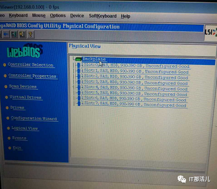 上图显示RAID卡备件主机磁盘阵列已经删除,显示磁盘阵列未划分状态。