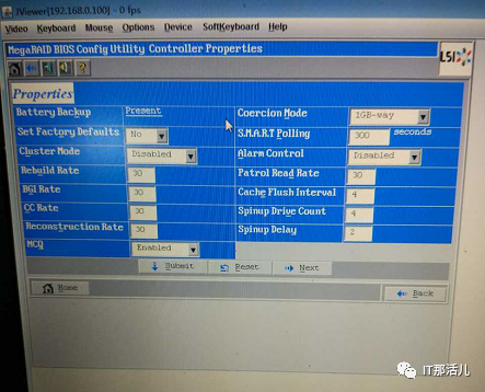 选择上图左边第二行Set Factory Defaults(恢复出厂设置)后面框下拉菜单中的YES选项,之后选择Submit(接受),再点击HOME(返回主页面)选项-----Exit-----重启服务器。