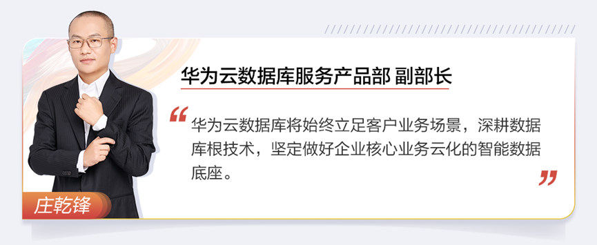 庄乾锋提到,华为在数据库领域持续投入已经超过16年,从一开始的内部应用到外部实践,始终坚持以客户业务需求为出发点,打造全场景数据管理方案,并围绕金融政企和云原生两大赛道发展出两条鲜明的路线。