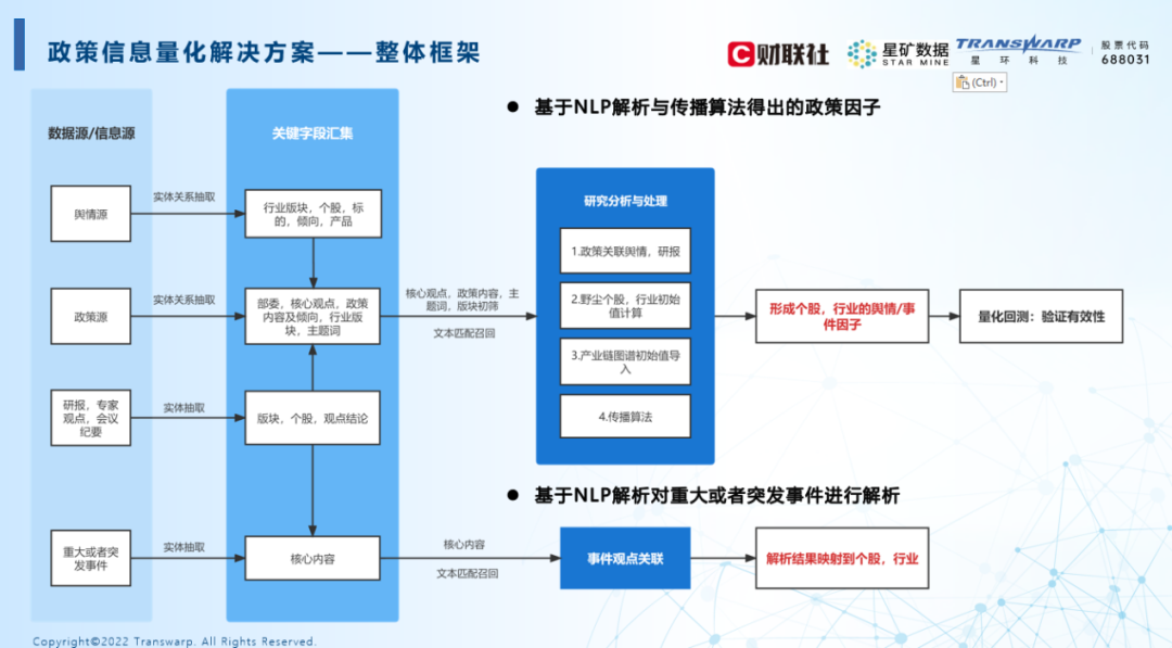 目前,财联社与星环科技已研发了新闻驱动、政策图谱、公告舆情、风控合规、灾害预警方案等8个产品模块,赢得了市场某头部百亿量化私募的认可。目前量化数据已提供给多家私募、证券行业内头部机构进行实测,产品应用场景持续开发中。未来平台将不断通过将业务与技术的不断融合,走在量化市场的最前沿。