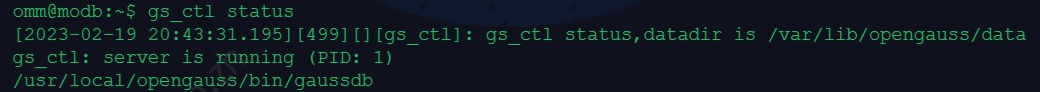 2、使用gs_ctl工具查看数据库状态,判断数据库是否启动。