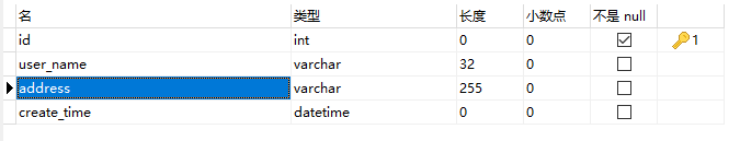 咱们建一张用户表,表中的字段有用户ID、用户名、地址、记录创建时间,如图所示