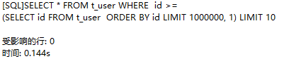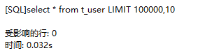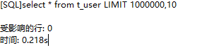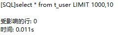 OK,咱们看下分页limit到一定值时的耗时是多少
