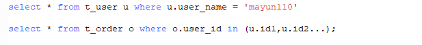 当 t_user 表的数据集小于 t_order 表时,用 exist 优化 in,使用 exists,两表执行顺序是先查 t_user 表,再查 t_order 表