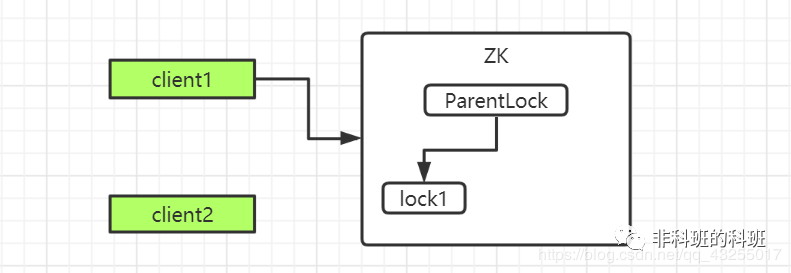 当有client1请求锁的时候,,就会在ParentLock下创建一个临时顺序节点,如下图所示: