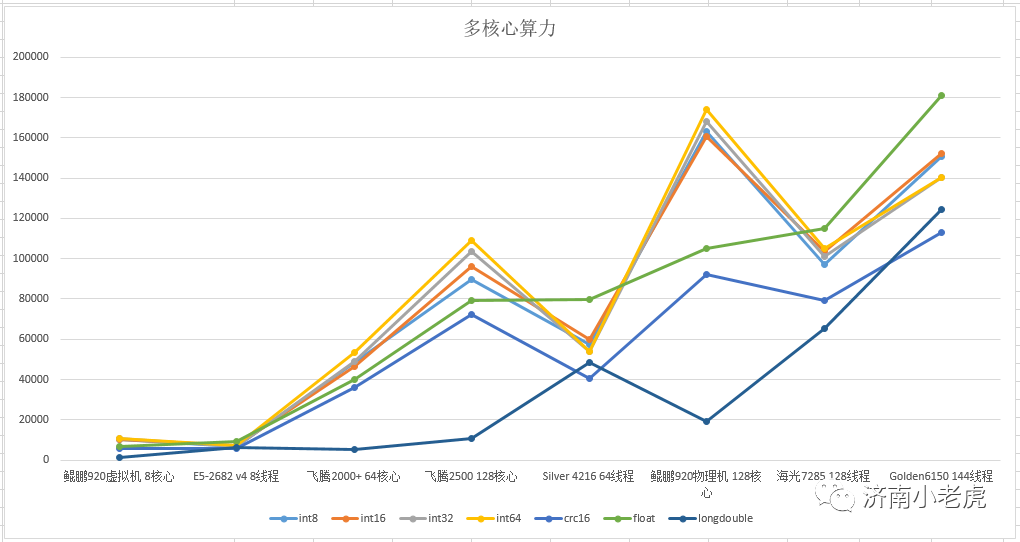 不论单核还是多路多核.都是接近王者的存在(除了128核心的鲲鹏920整形较高).