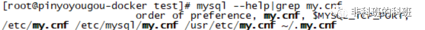 mysql默认会在启动的时候按照这些文件路径去寻找这些配置参数文件,进而初始化mysql实例,我们也可以通过mysql --help|grep my.cnf来查看my.cnf文件所在的路径,如下图所示: