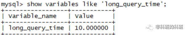 在实际的开发中,一般不会有超过10秒的的sql,所以我们将该值可以设置小一点,设置为1秒,通过命令 SET long_query_time=1