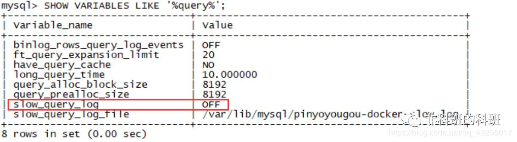 将该值设置为1秒,但是默认慢查询的日志记录功能是关闭的。如下图所示: