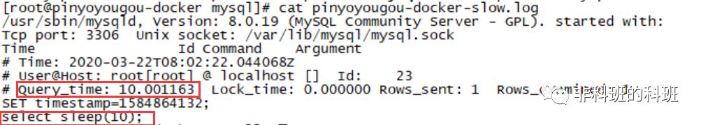 执行cat + 改文件名,就可以看到该sql执行的时间,以及执行慢的sql语句: