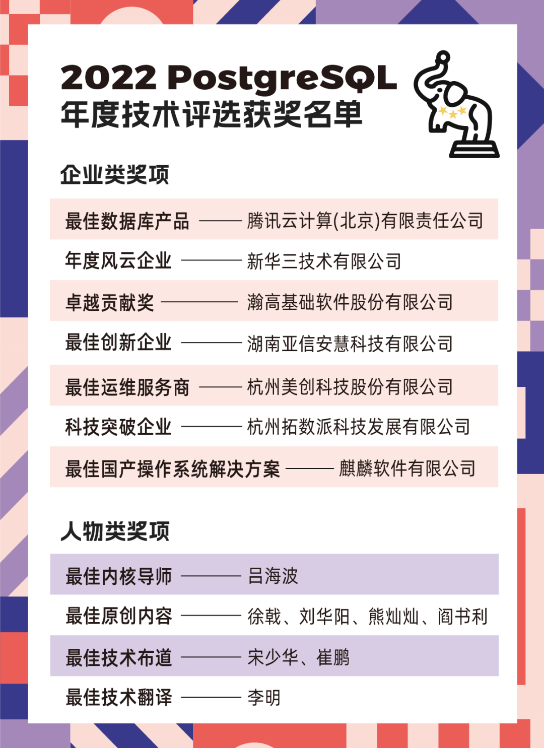 2022年度PostgreSQL中国技术评选也在主论坛隆重揭晓,全面展现对PostgreSQL中国生态起到重大推动与贡献作用的企业与技术专家!