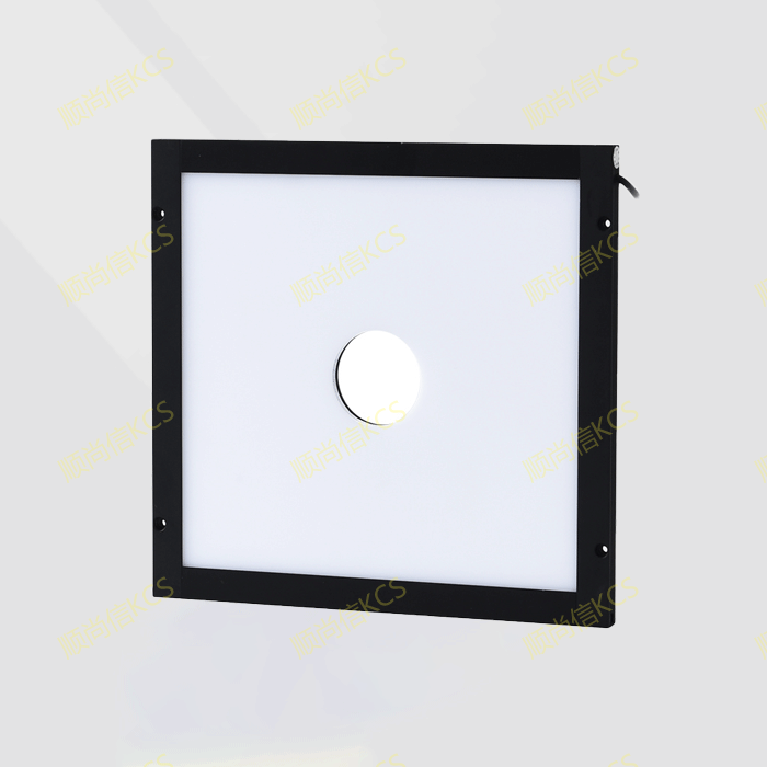 开孔侧面导光源是一种平面照明光源,LED经结构优化均布在光源四周或两侧,经特殊导光板导光均匀照射发光,又由于结构优化,光源重量只有面光源的2/3,适合用于外形轮廓检测场合。