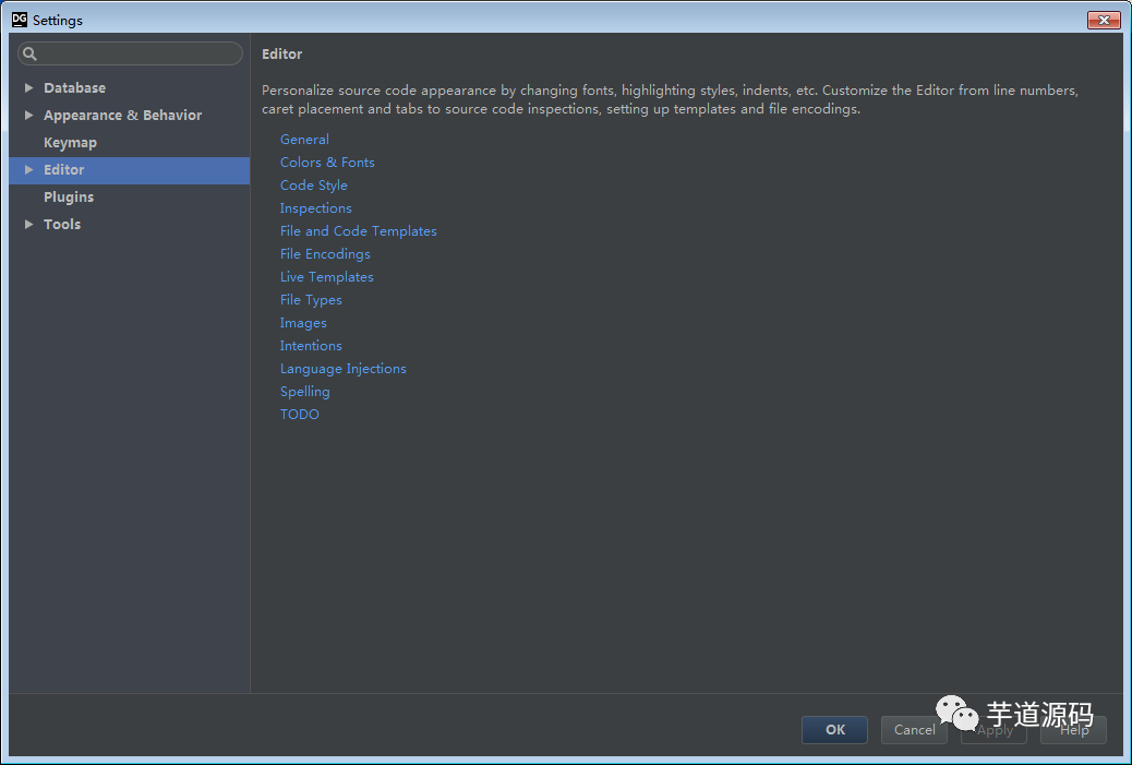 打开DataGrip,选择File->Settings,当前面板显示了常用设置项