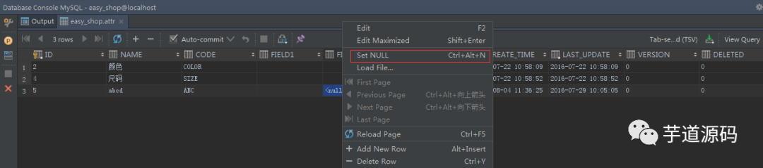 有的时候我们要把某个字段置为null,不是空字符串"",DataGrip也提供了渐变的操作,直接在列上右键,选择set null