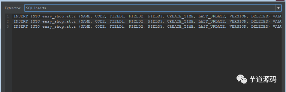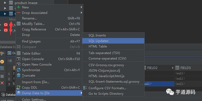 即可以导出insert、update形式的sql语句,也能导出为html、csv、json格式的数据