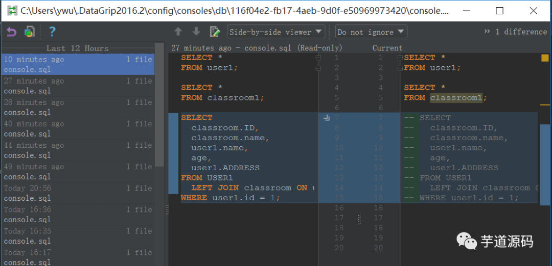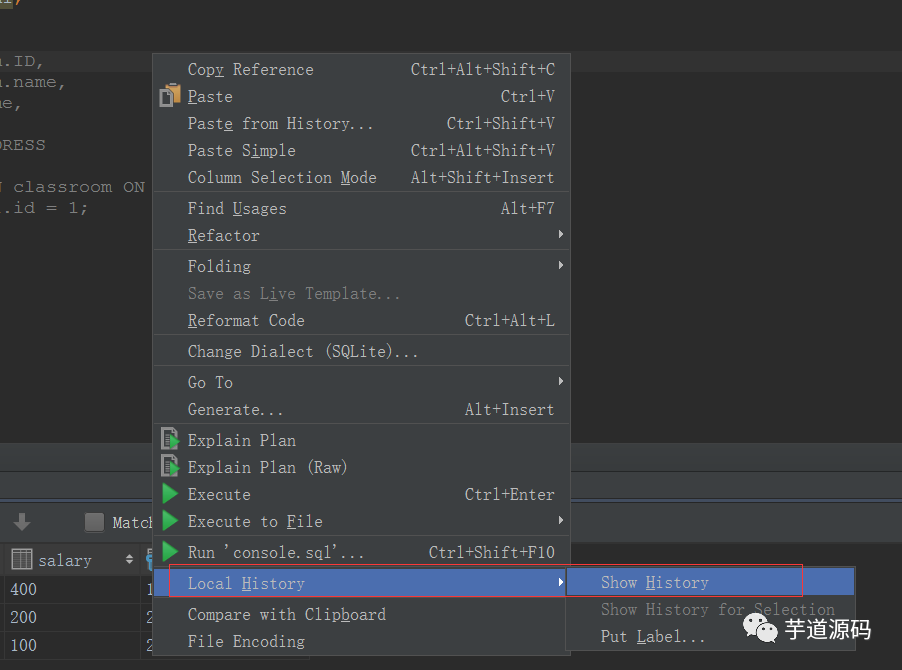 在文本编辑器中,邮件,local history,show history,可以查看使用过的sql历史