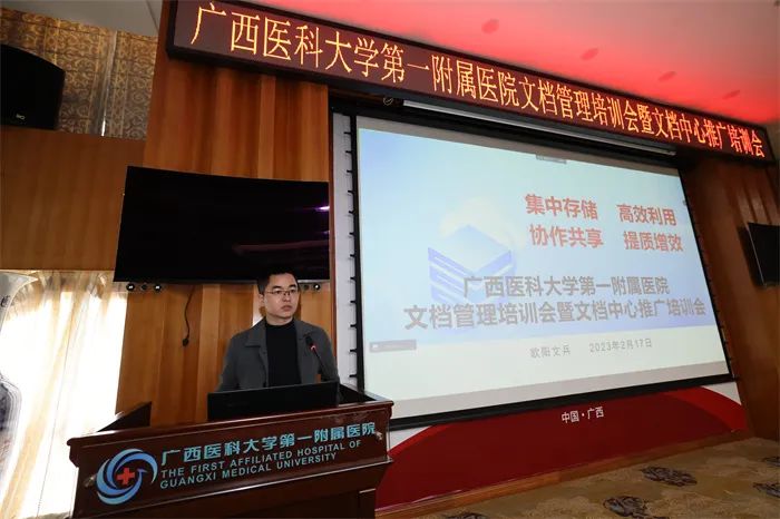 2月17日下午,广西医科大第一附属医院在在院内大学术厅以线下+线上的方式,举办了文档管理暨文档中心推广培训会,全院各行政职能部门负责人及业务骨干参加会议。