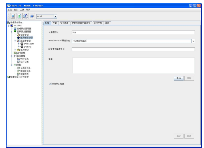 南大通用目录服务系统管理服务器及其控制台 (GBase 8d Admin )是对南大通用目录服务系统(GBase 8d)实行管理的工具,它的控制台采用可视化的图形用户界面,把用户管理请求发送给 GBase 8d Admin Server,由 GBase 8d Admin Server 在后台实现对目录服务器的管理。实现了对 GBase 8d 目录服务器进行远程的管理,对目录服务器的相关参数进行配置。