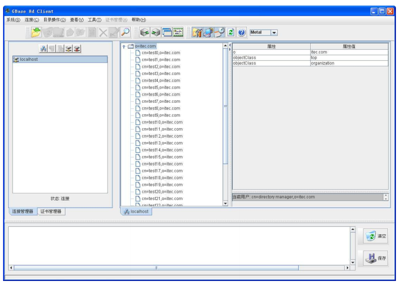 南大通用目录服务系统客户端 (GBase 8d Client)是根据 LDAP 轻型目录访问协议而开发的通用目录客户端软件,是针对目录管理员和目录应用开发人员而开发的,它是一个通用的 LDAP 客户端软件,可以访问符合 LDAP 标准的目录服务器 GBase 8d Server。它为目录管理员和目录应用开发人员提供可视化的图形化用户界面来浏览、查询和更新目录服务器信息,大大增加产品的易用性。