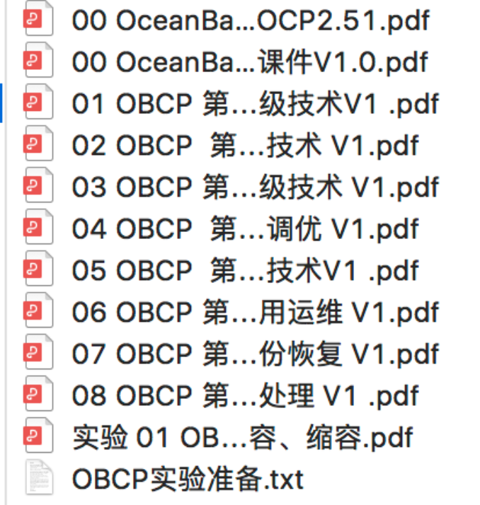 OBCP 是 OceanBase 权威技术认证体系中的数据库专家认证,从 OBCA 专员跃升到 OBCP 专家。主要讲解 OceanBase 的高级特性(全局索引、全局数据一致性、负载均衡策略、SQL 引擎优化),以及 OceanBase 内存构成、内存数据落盘策略等知识,同时提供了进阶实验手册。